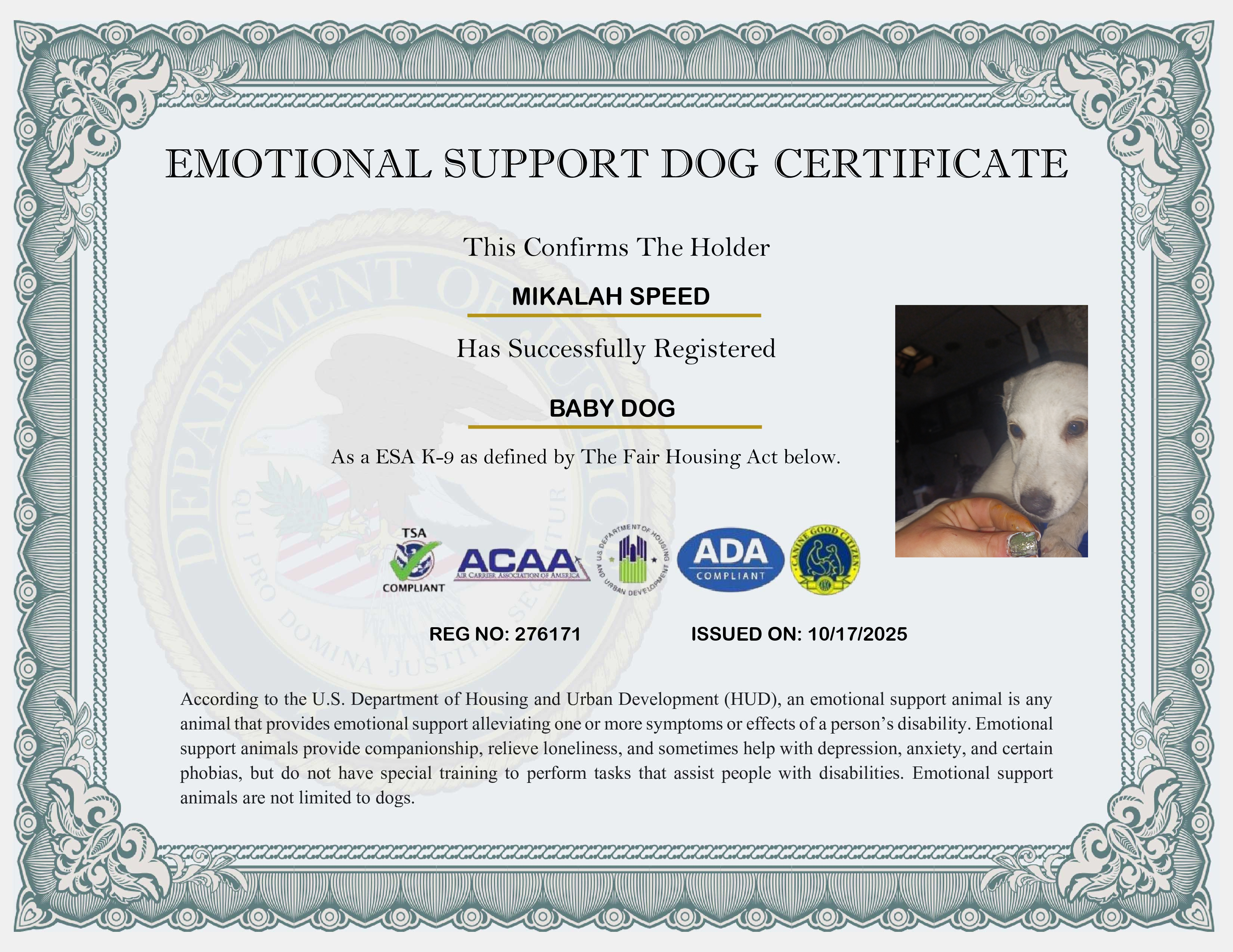 USA Emotional Support Dog Registration