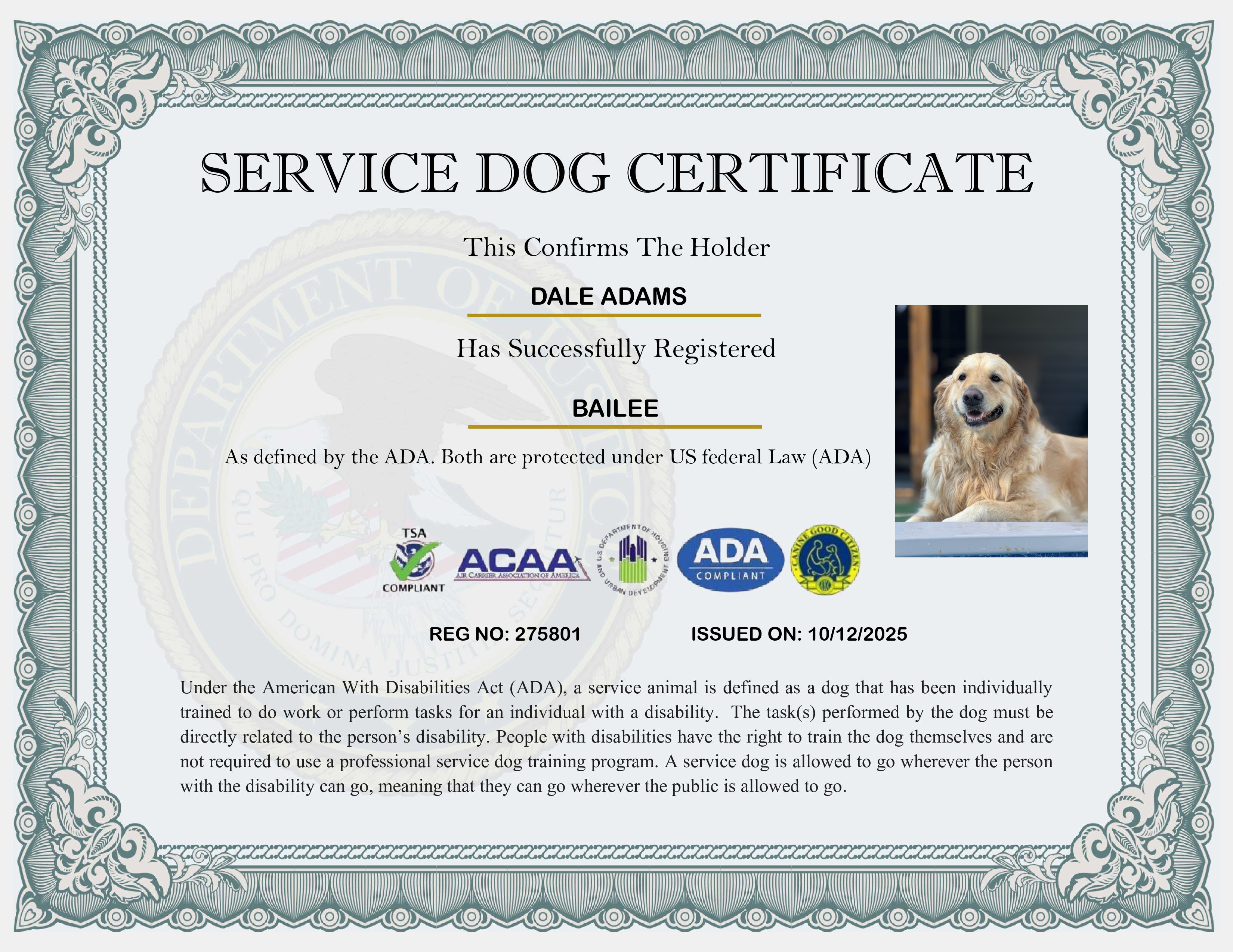 USA Service Dog Registration