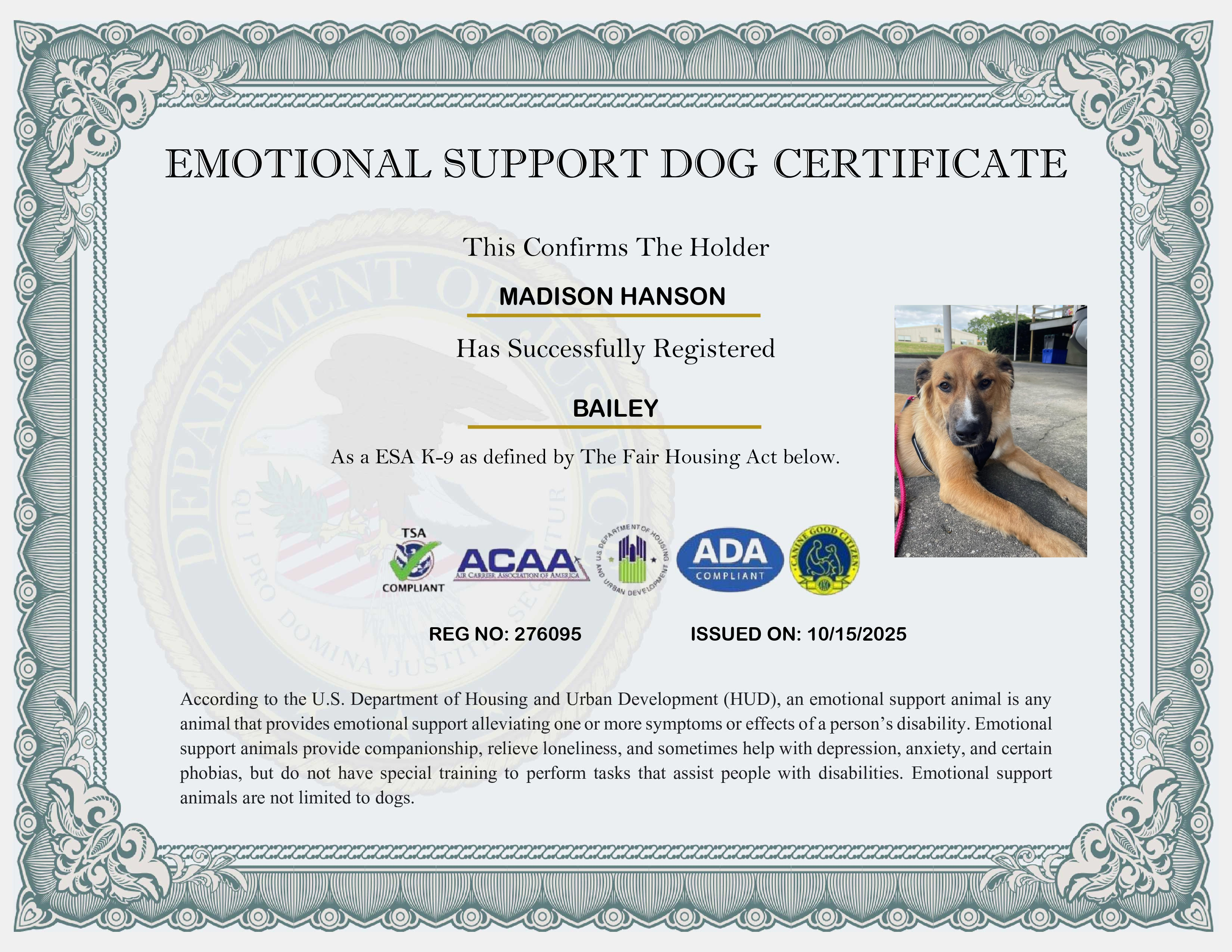 USA Emotional Support Dog Registration