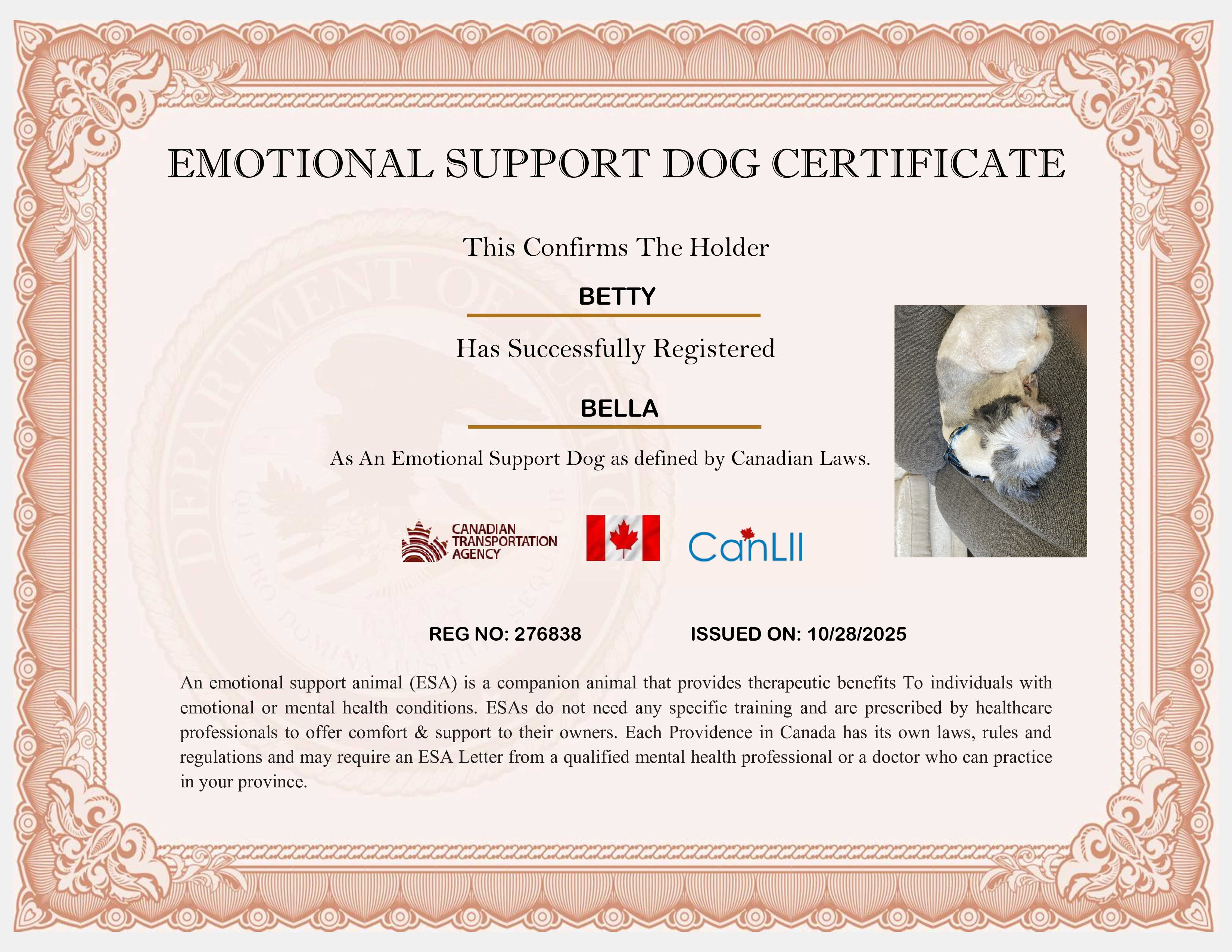Emotional Support Dog ID Card