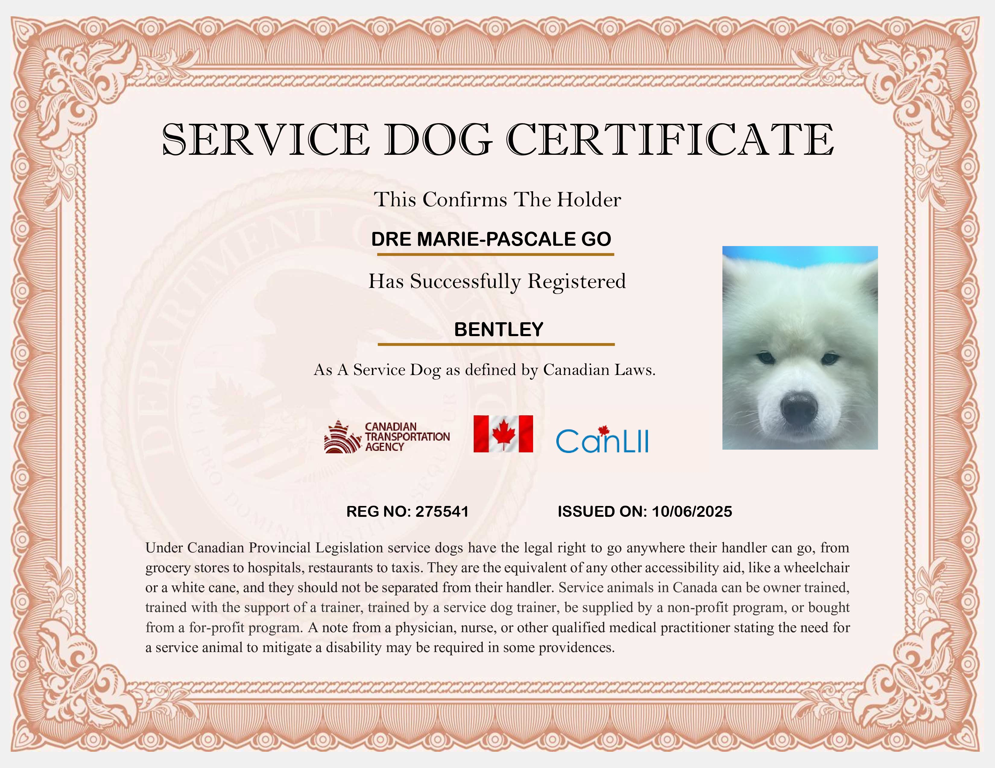 Canada Service Dog Registration