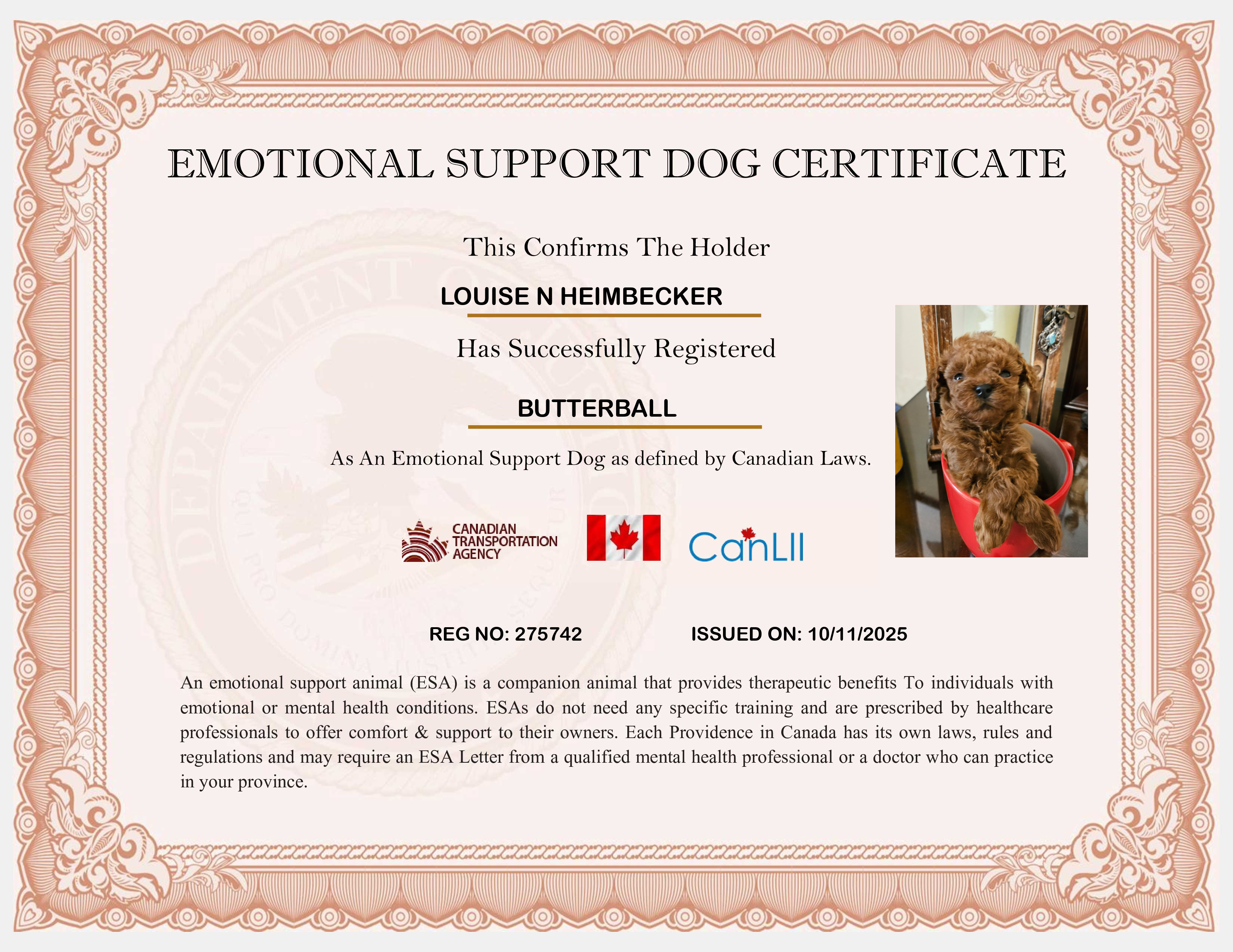 Canada Support Dog Registration