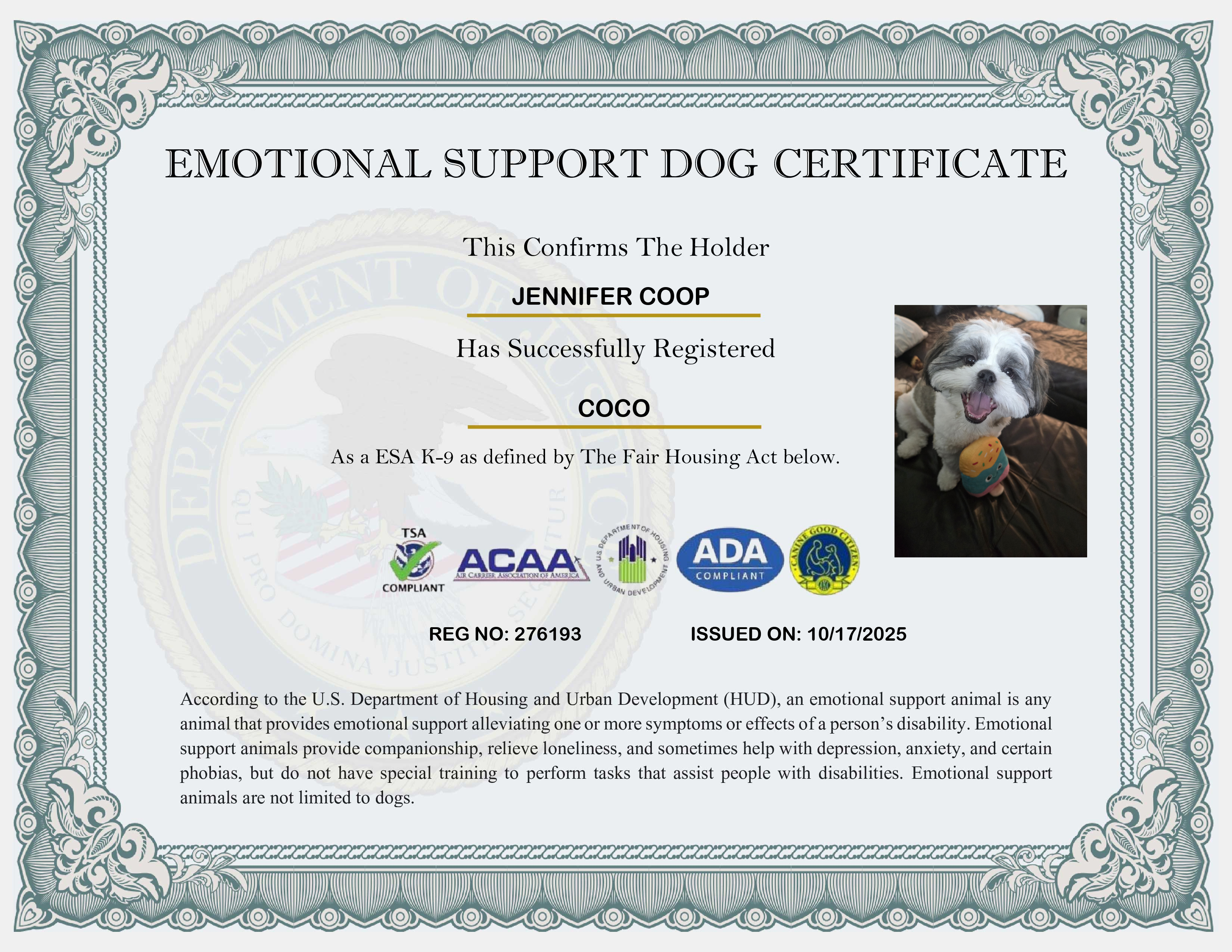 USA Emotional Support Dog Registration