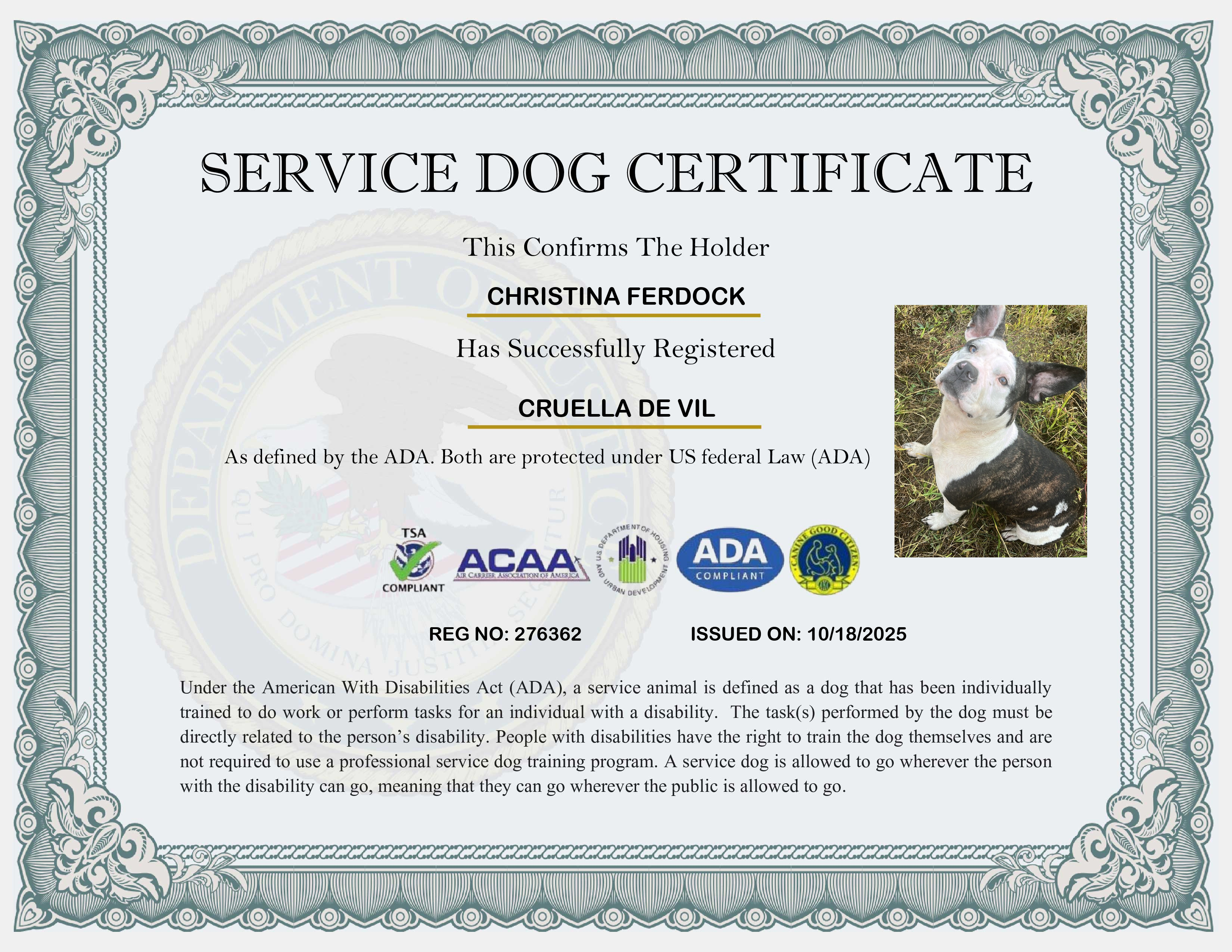 USA Service Dog Registration
