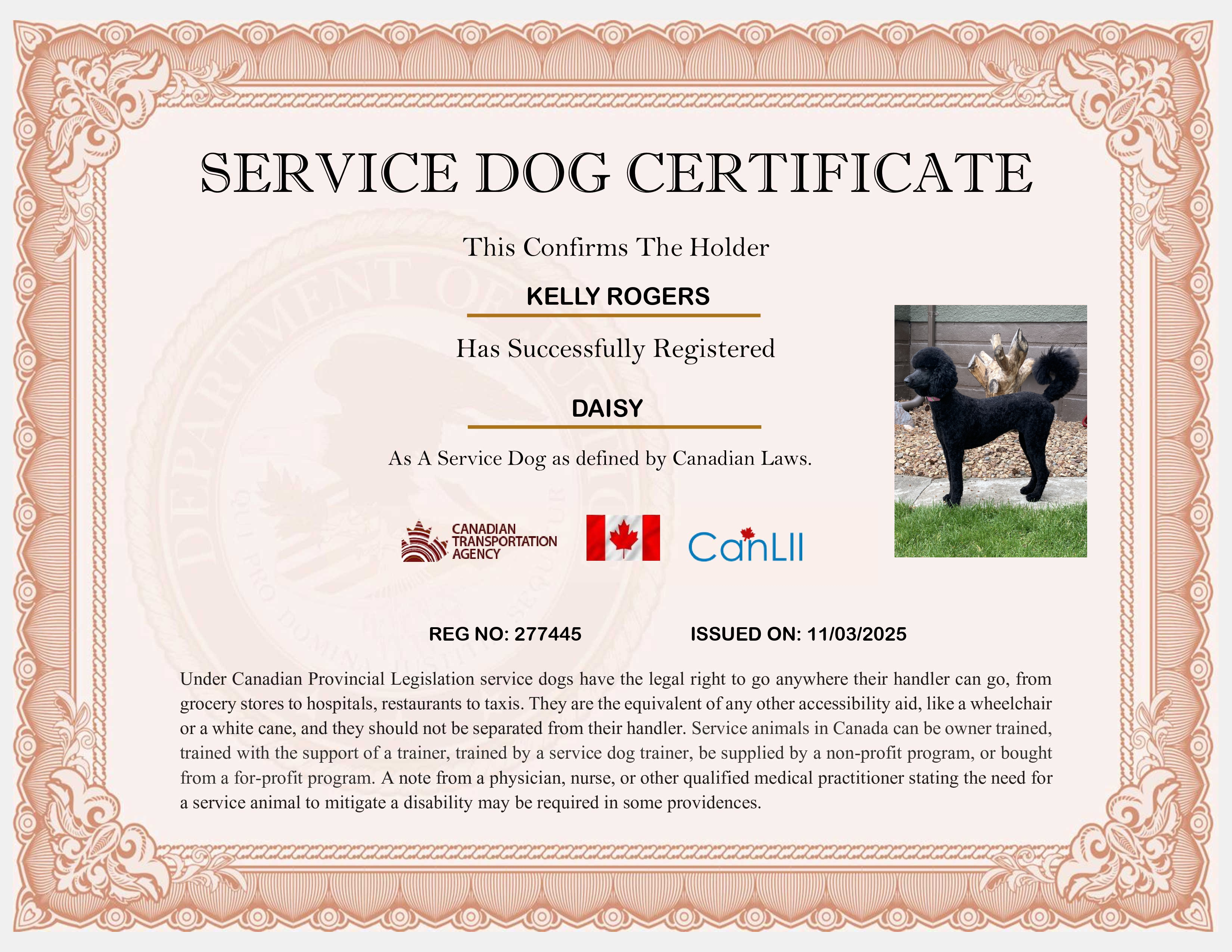Canada Service Dog Card