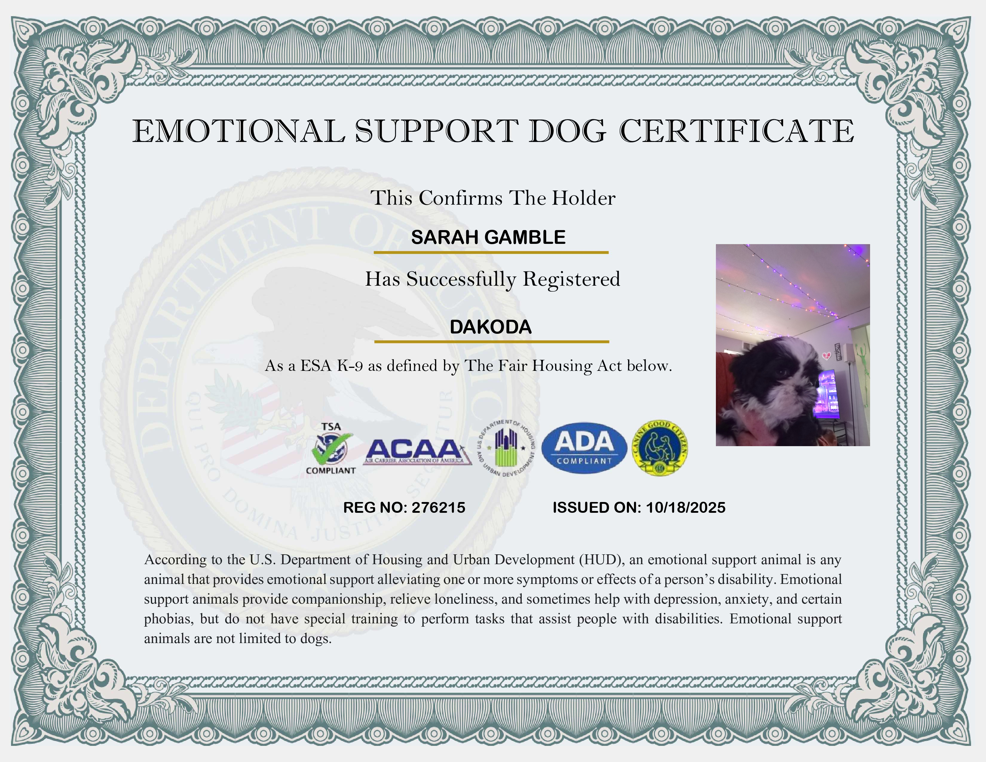 USA Emotional Support Dog Registration