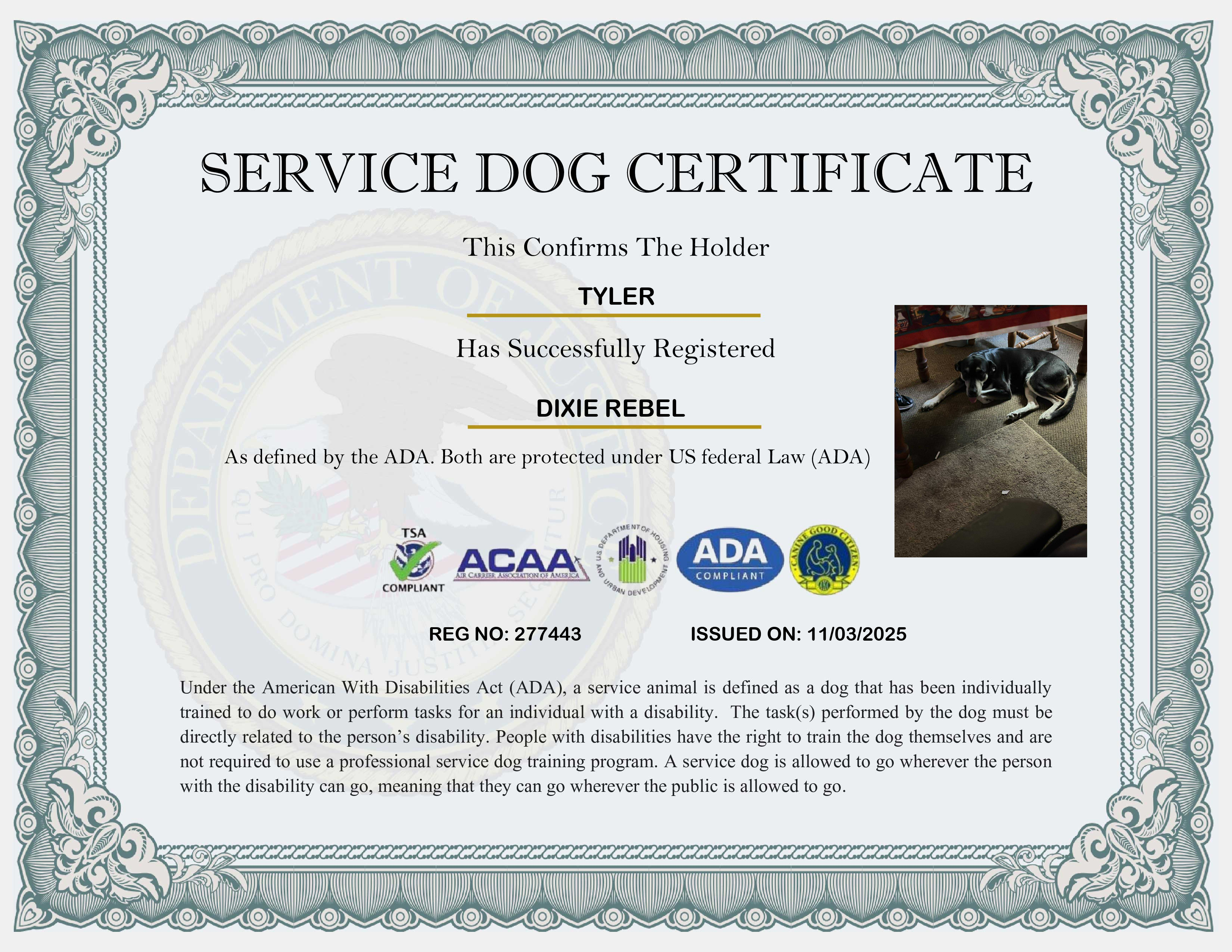 USA Service Dog Registration