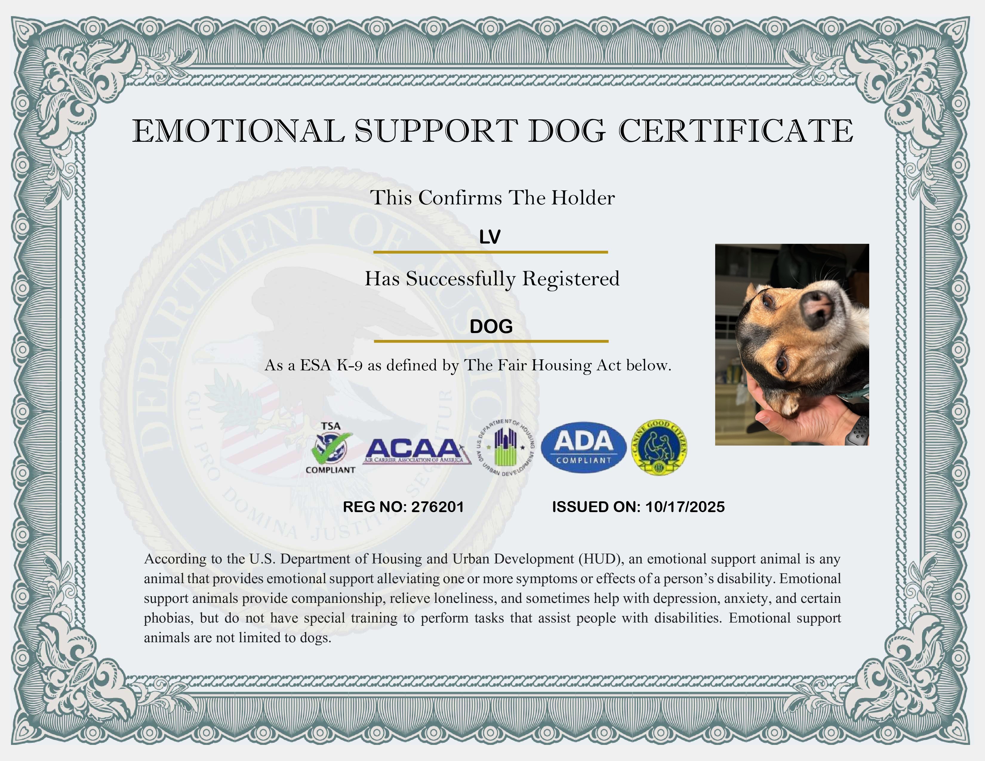 USA Emotional Support Dog Registration