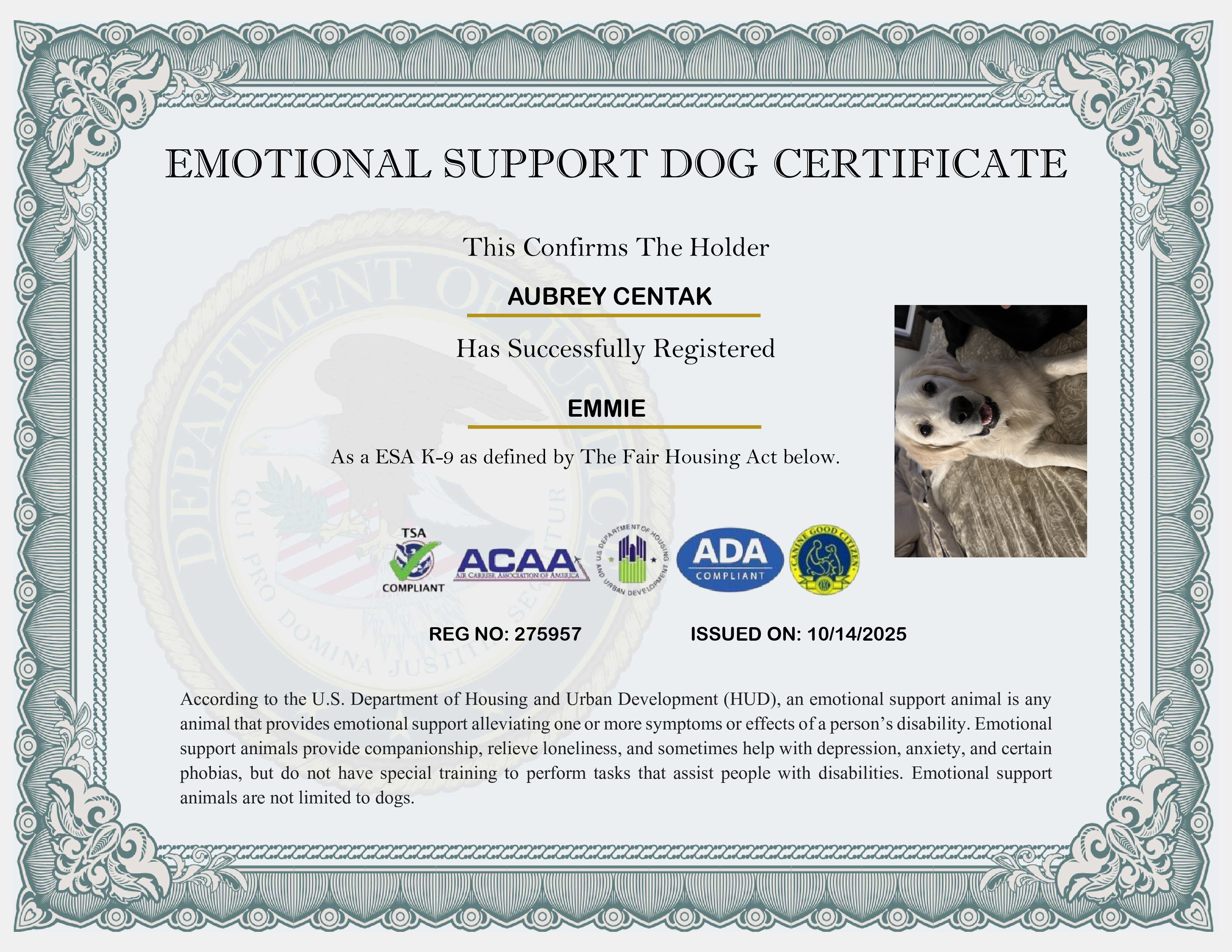 USA Emotional Support Dog Registration