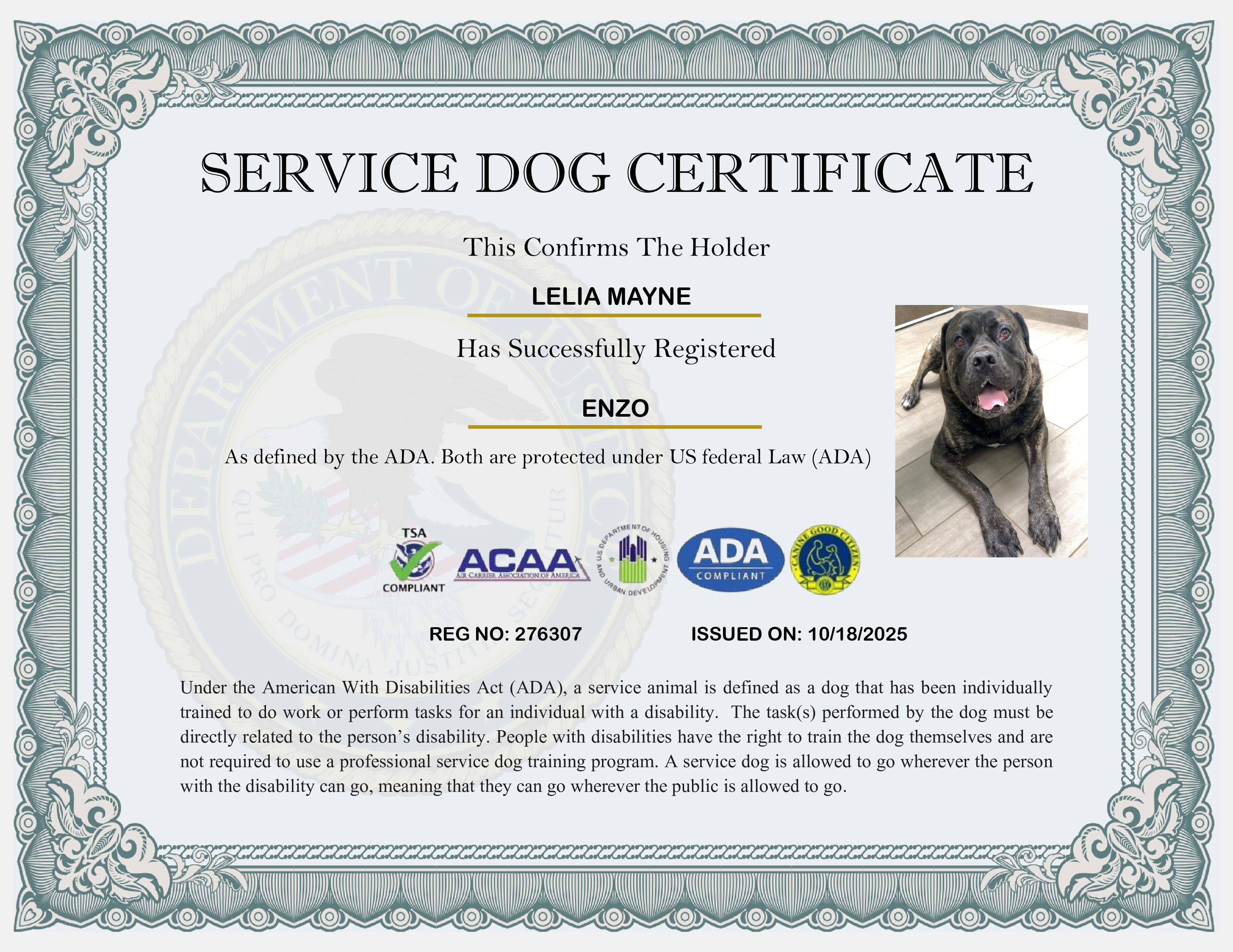 USA Service Dog Registration