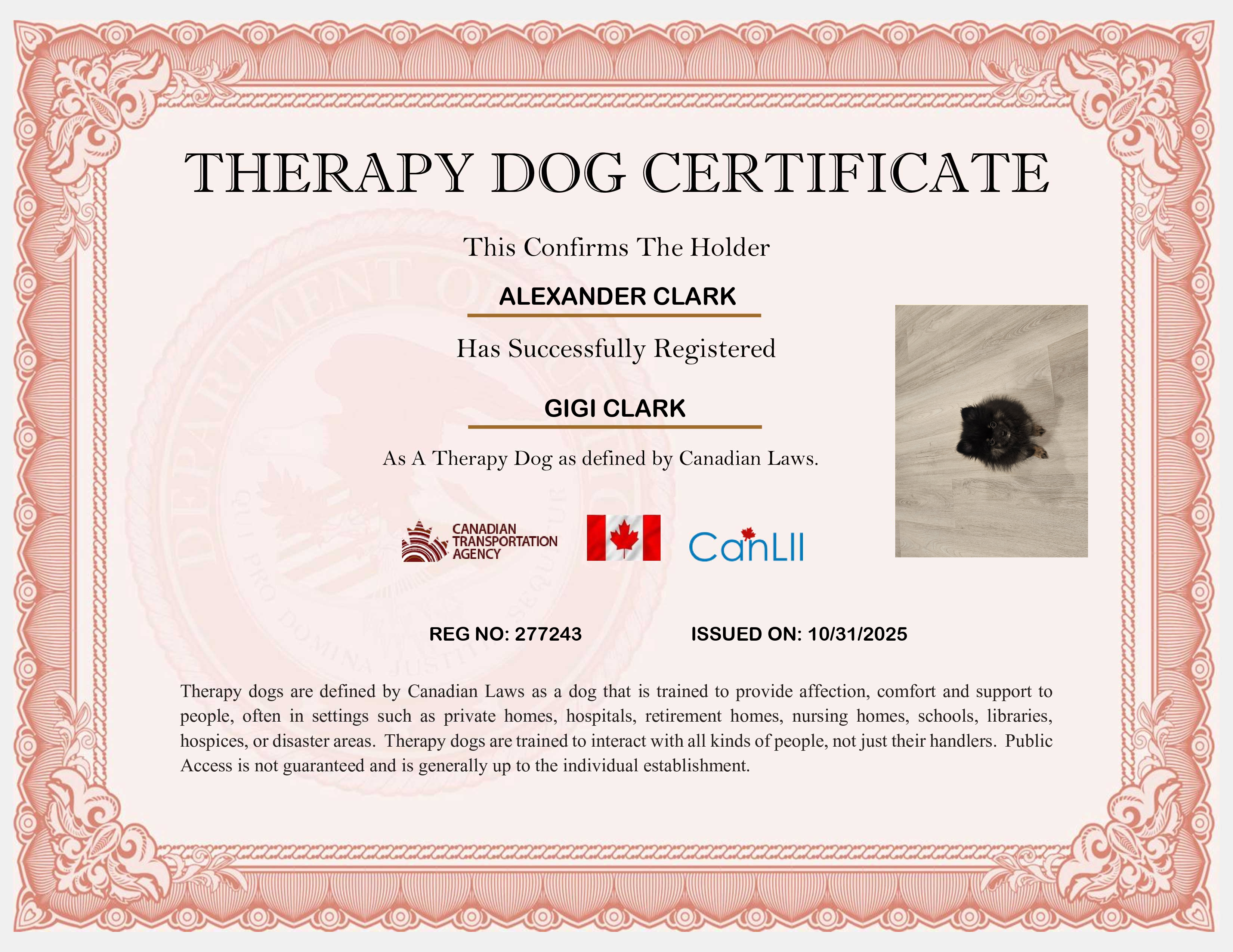 Canadian Support Dog