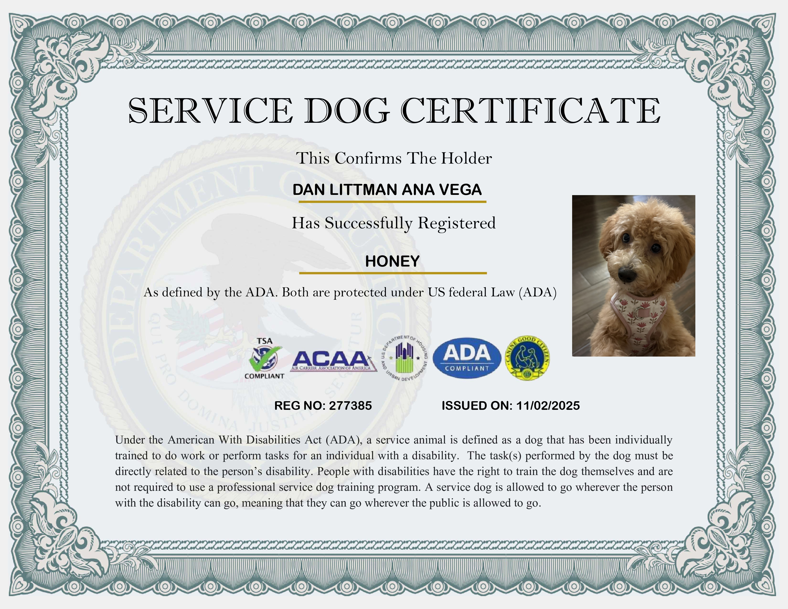 USA Service Dog Registration