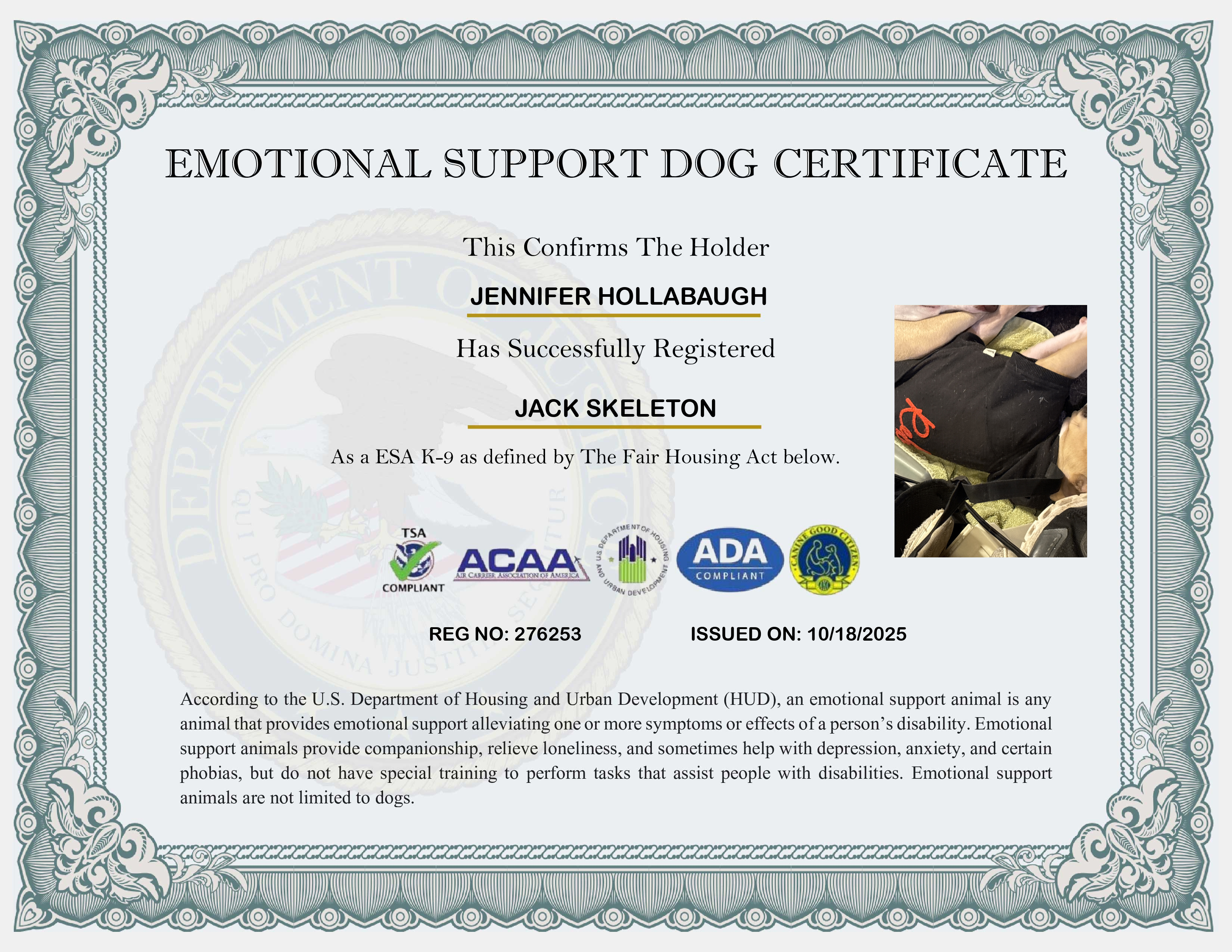 Emotional Support Dog ID Card