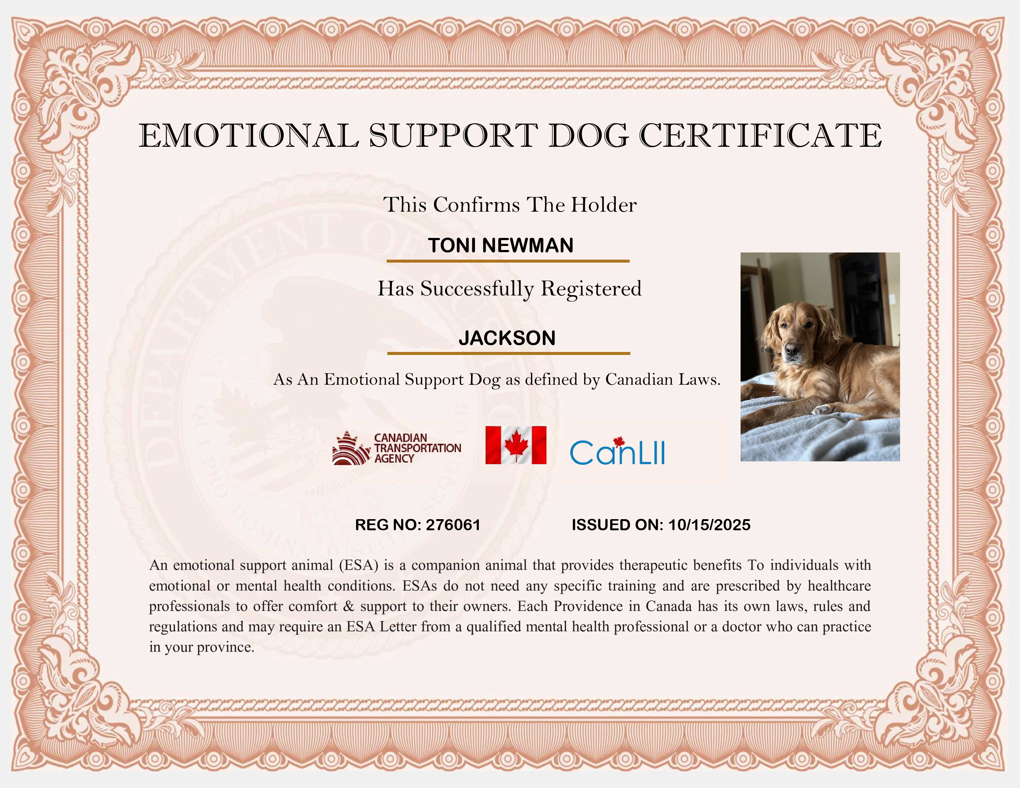 Emotional Support Dog ID Card