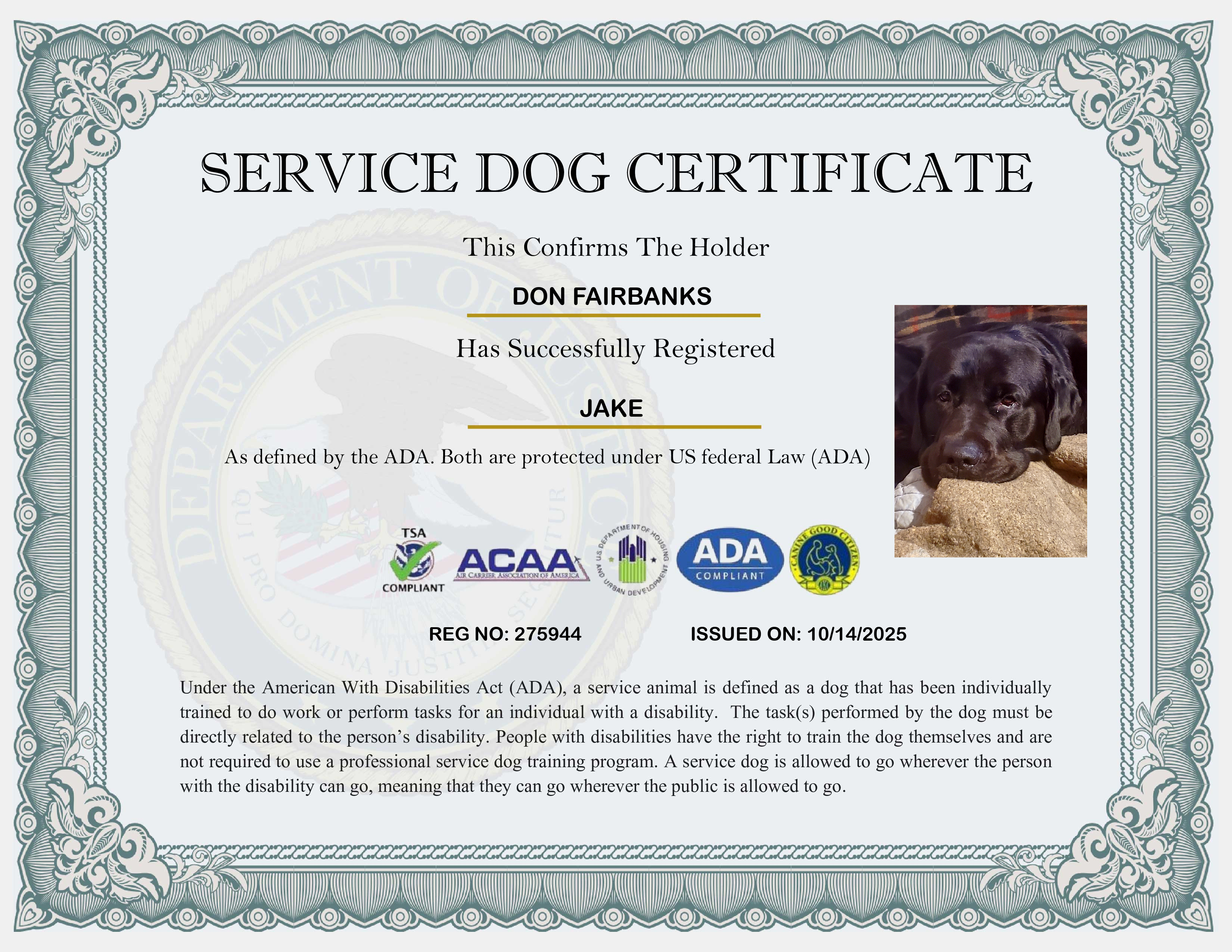 USA Service Dog Registration