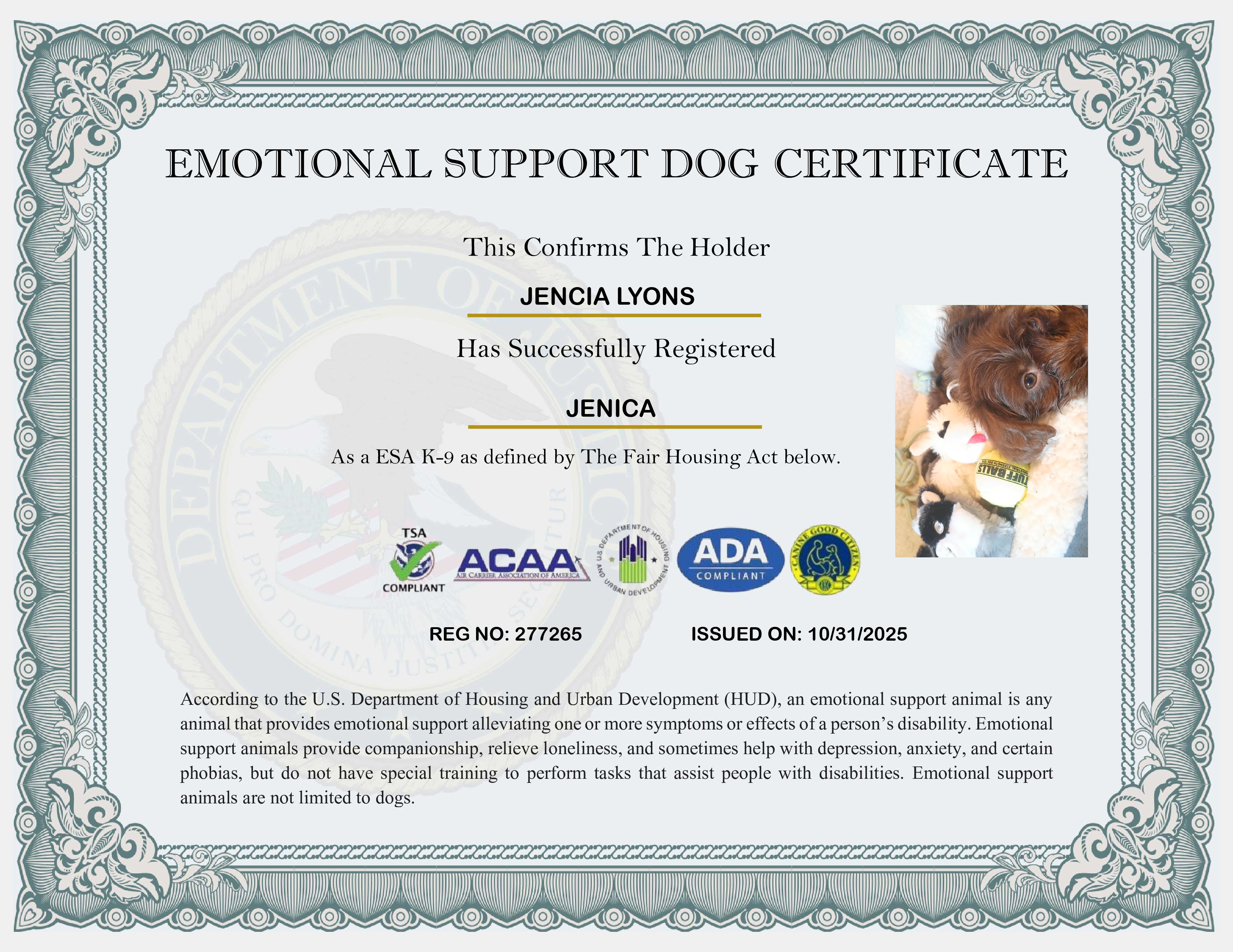 Emotional Support Dog ID Card