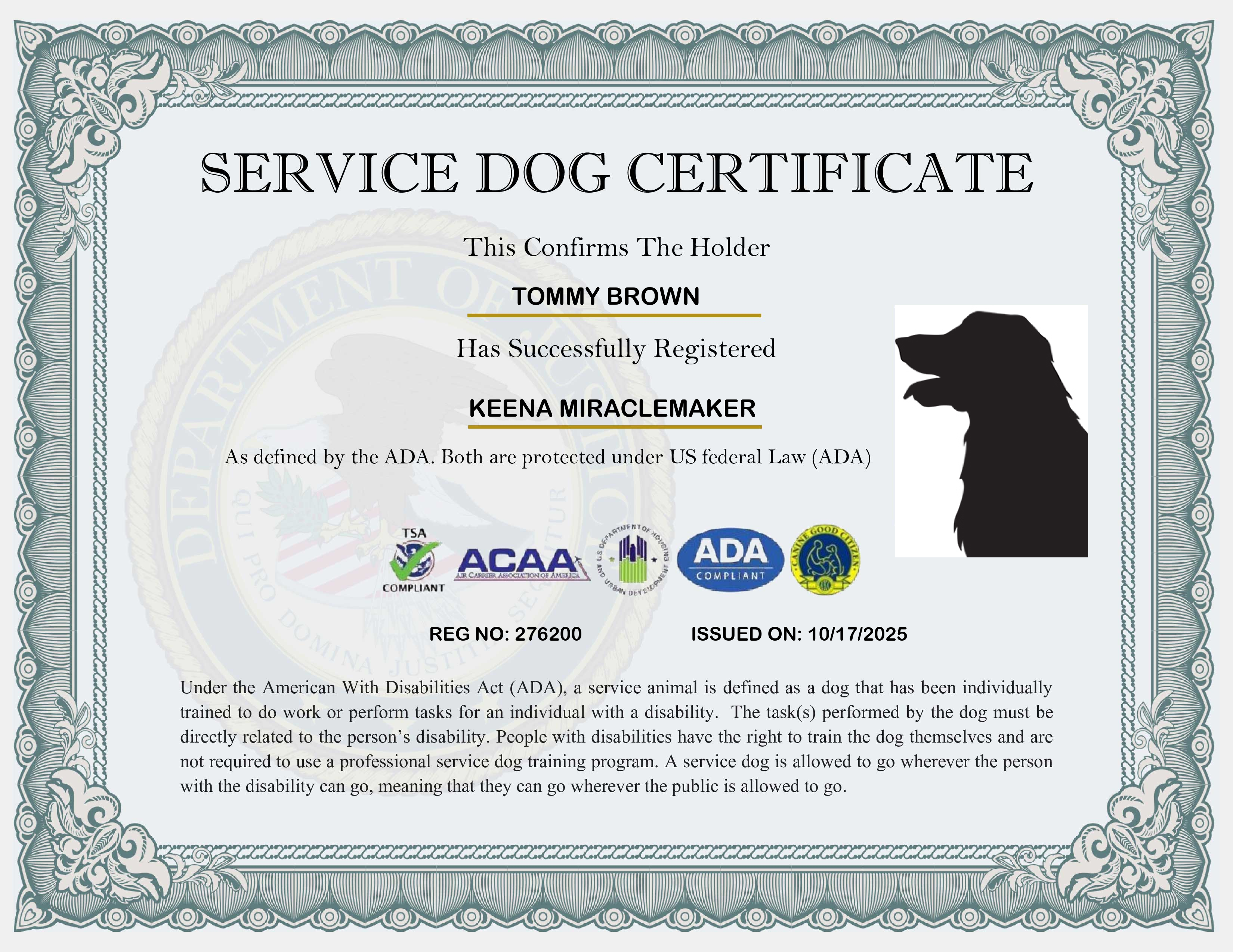 USA Service Dog Registration