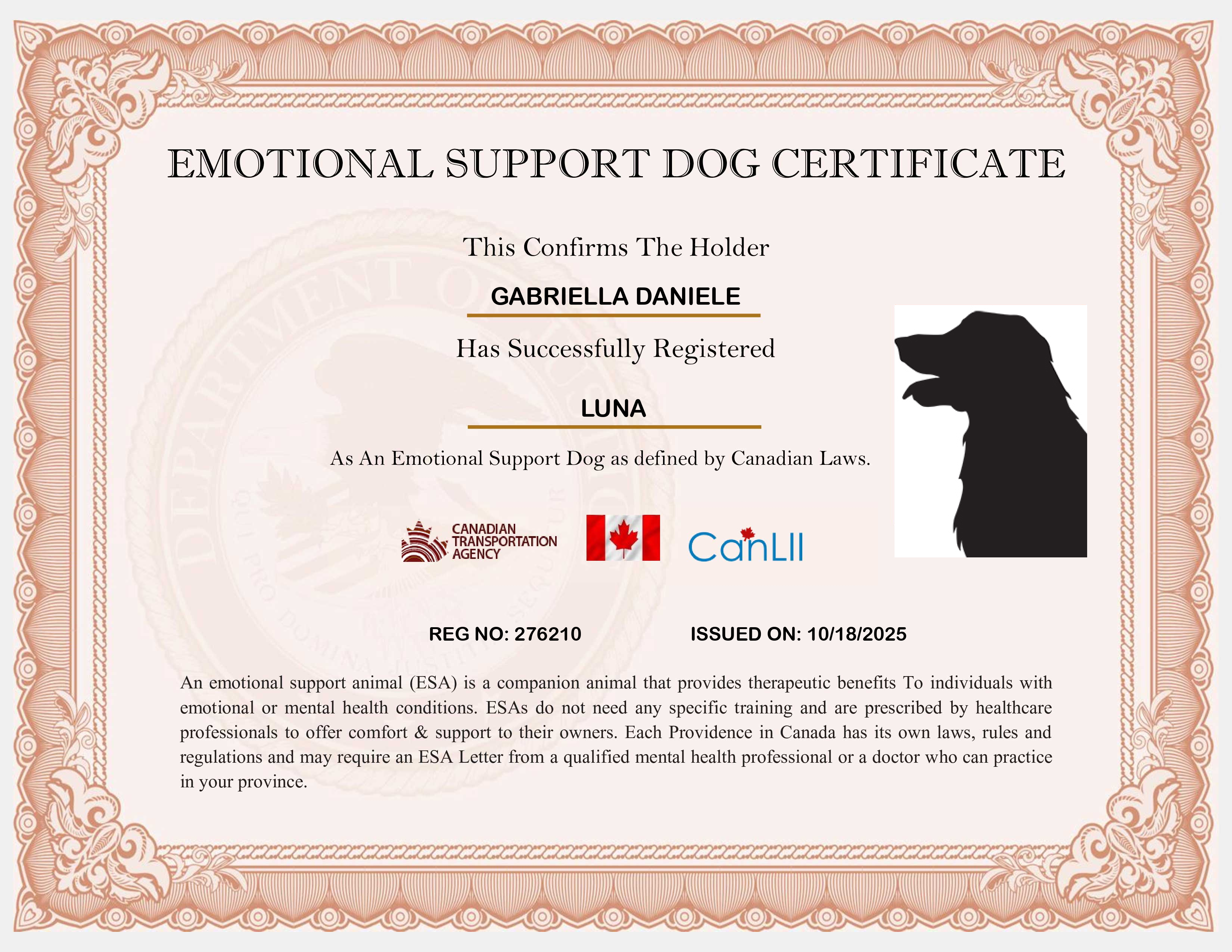 Emotional Support Dog ID Card