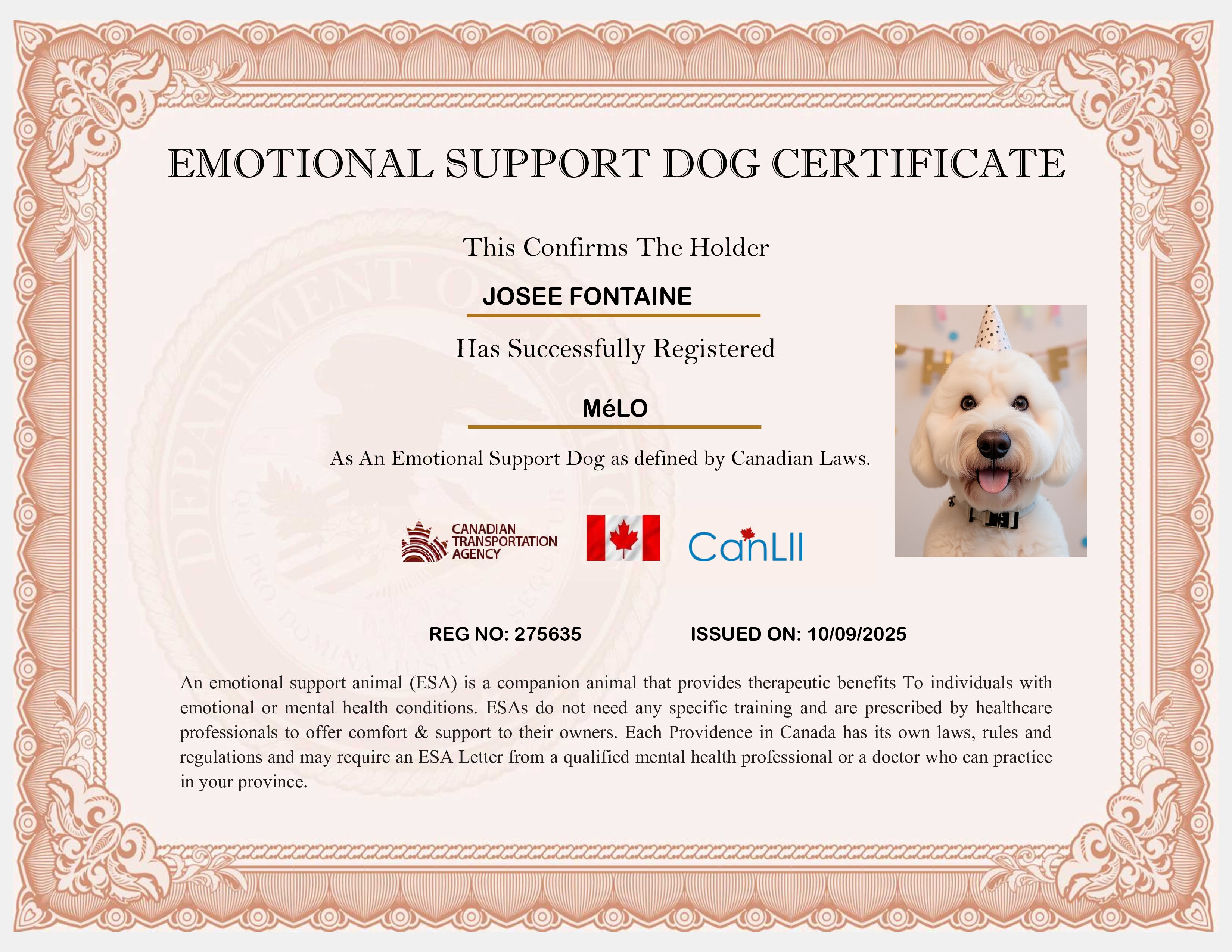 Canada Support Dog Registration