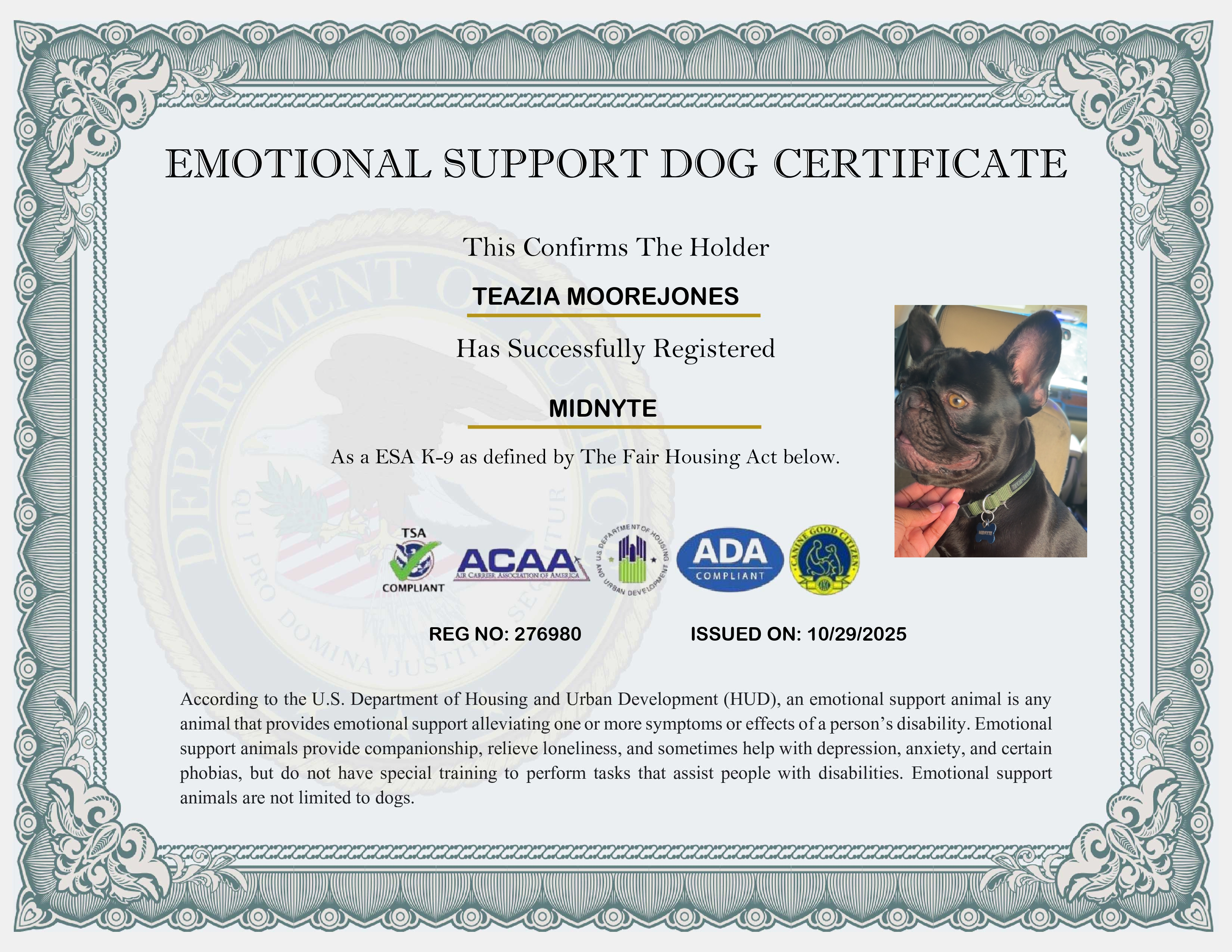 USA Emotional Support Dog Registration