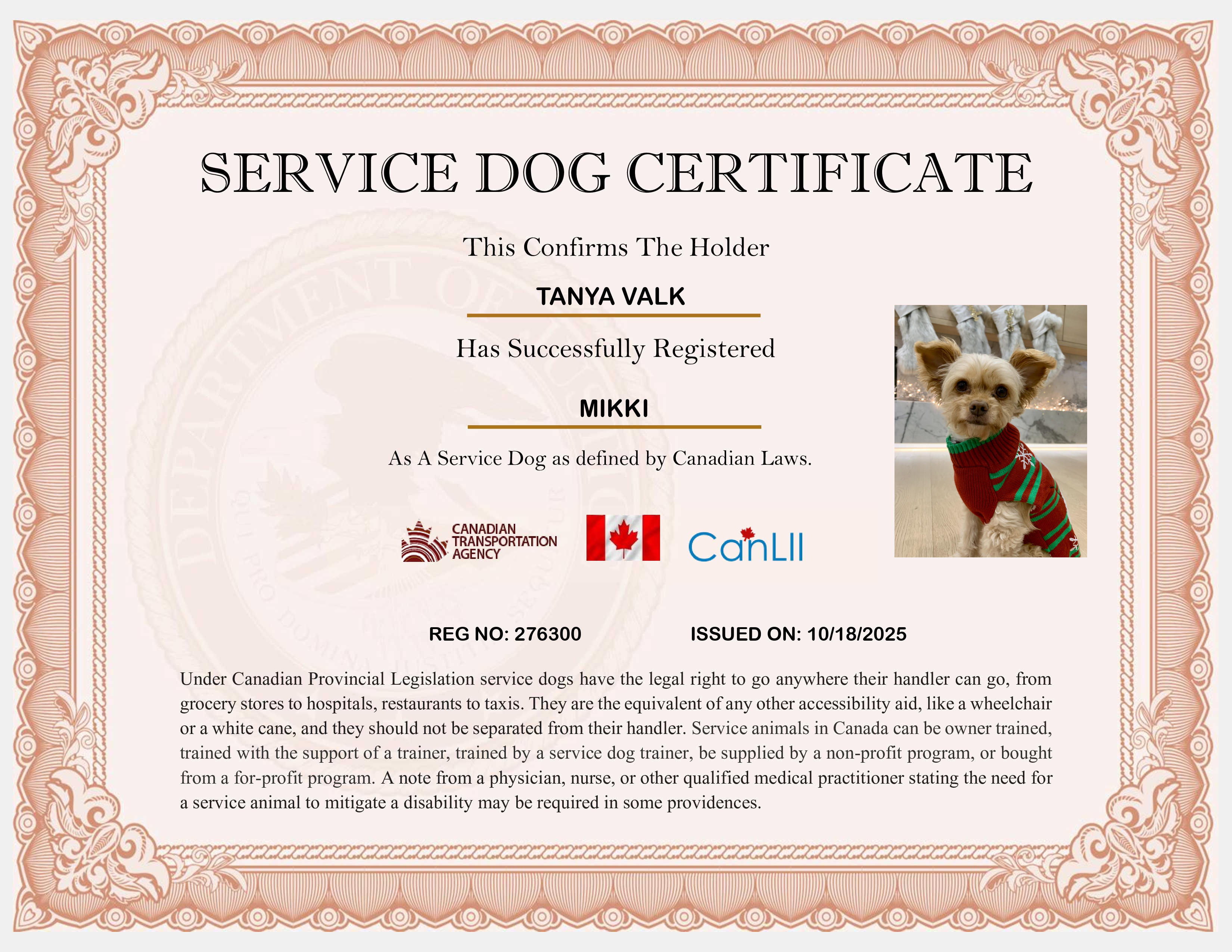 Canada Service Dog Registration