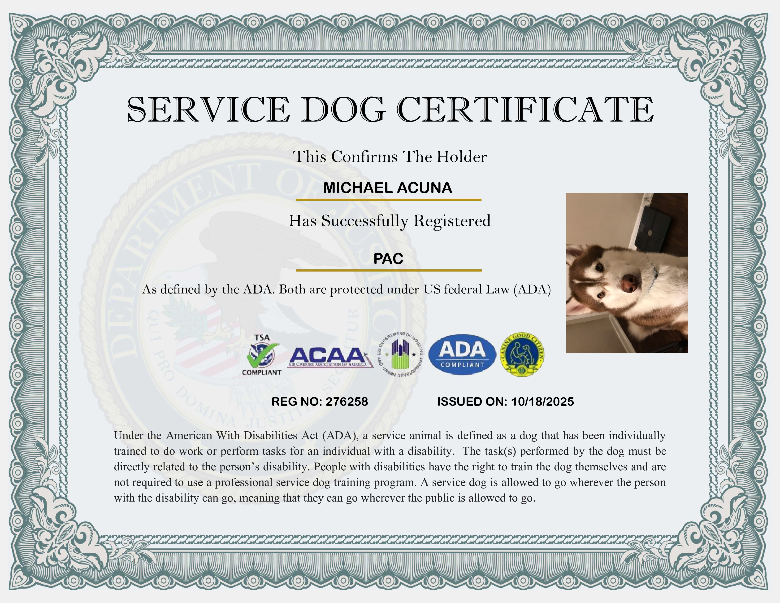 USA Service Dog Registration