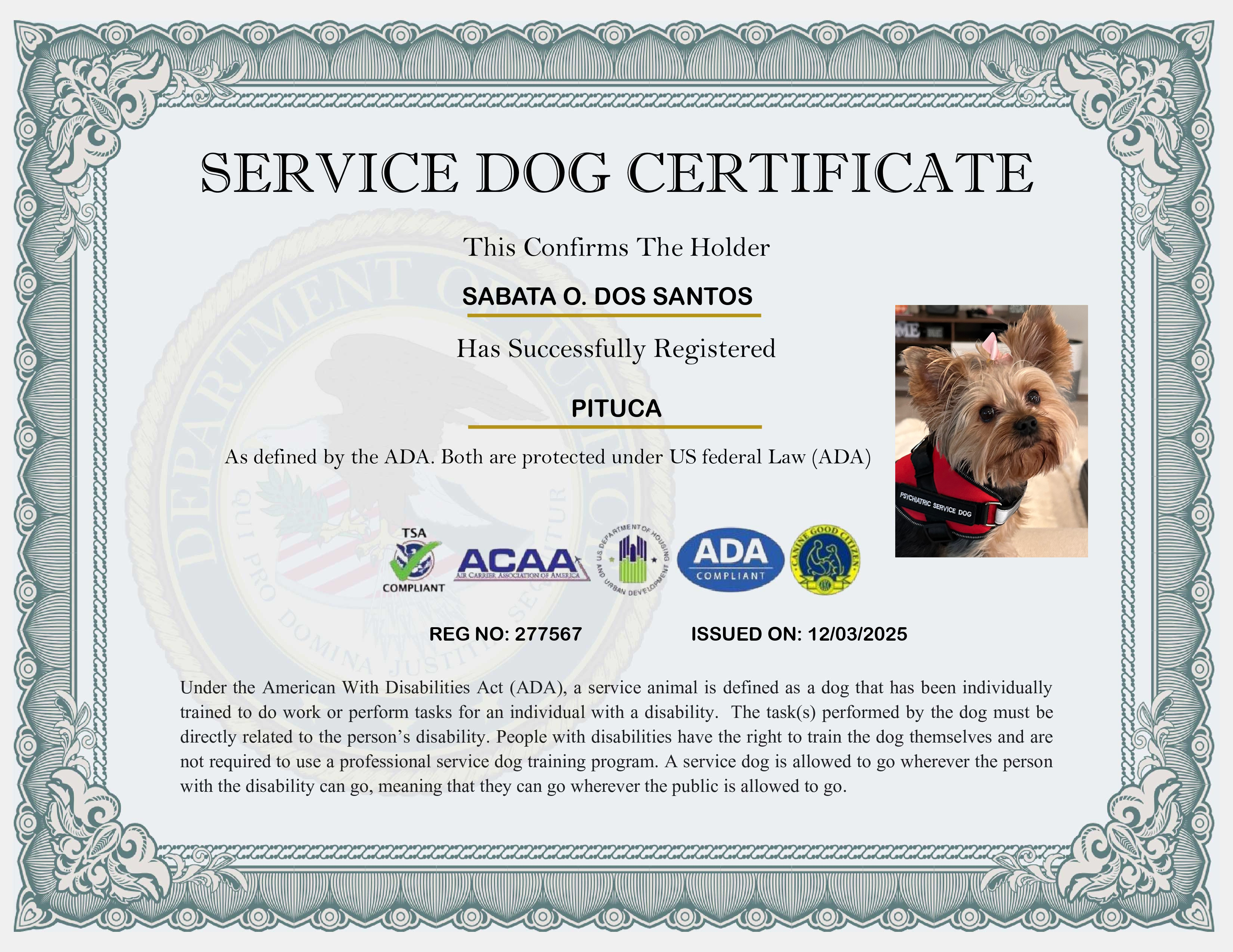 USA Service Dog Registration