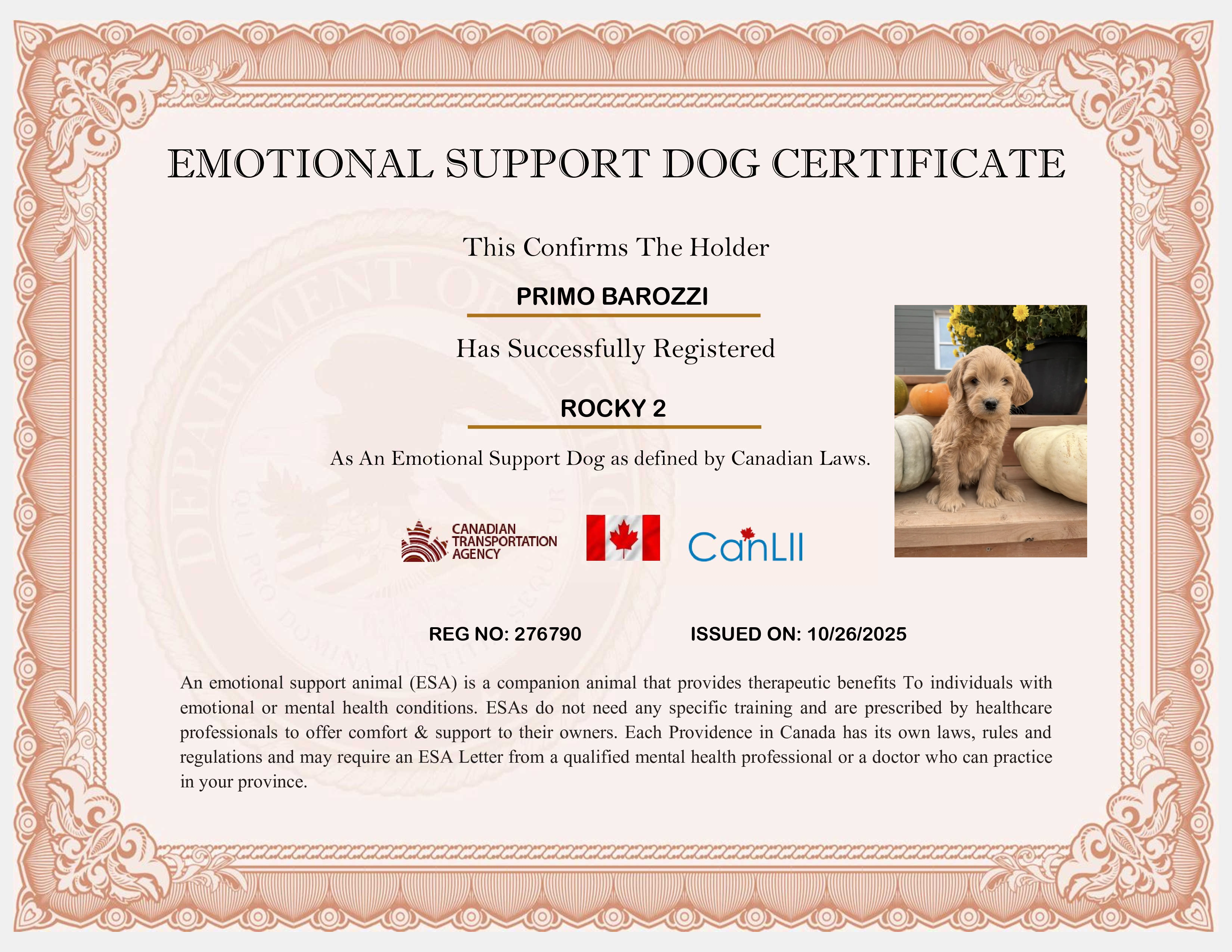 Canada Support Dog Registration