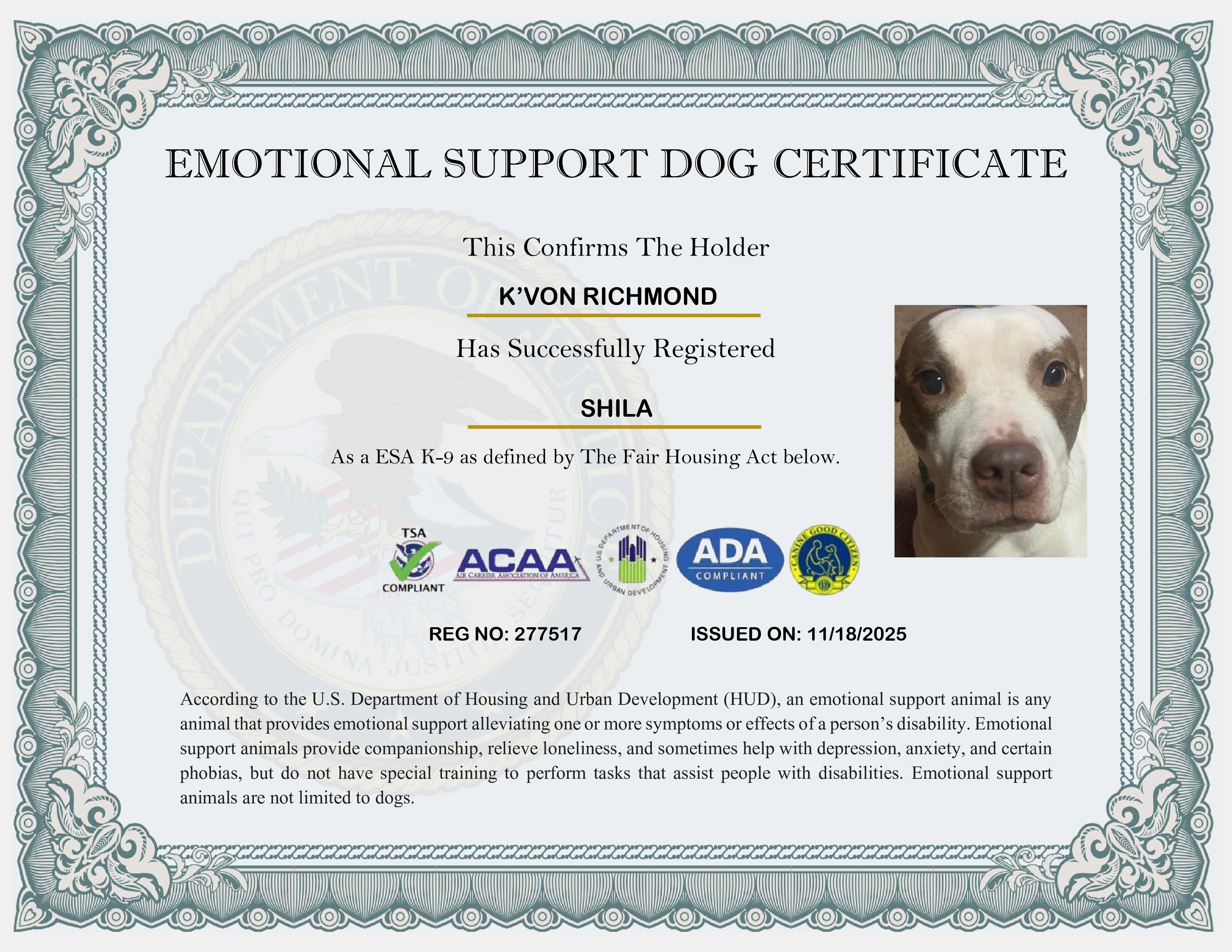 USA Emotional Support Dog Registration