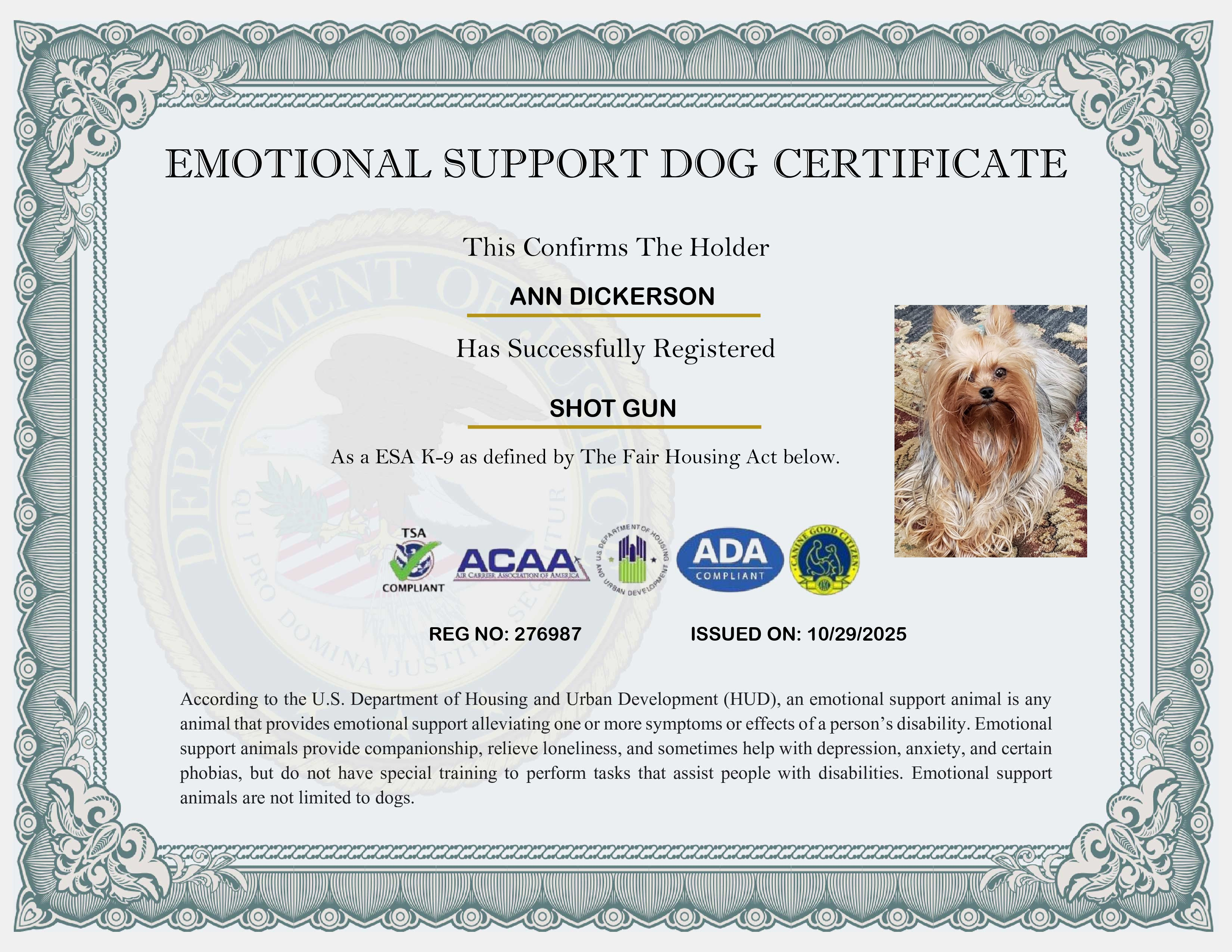 USA Emotional Support Dog Registration