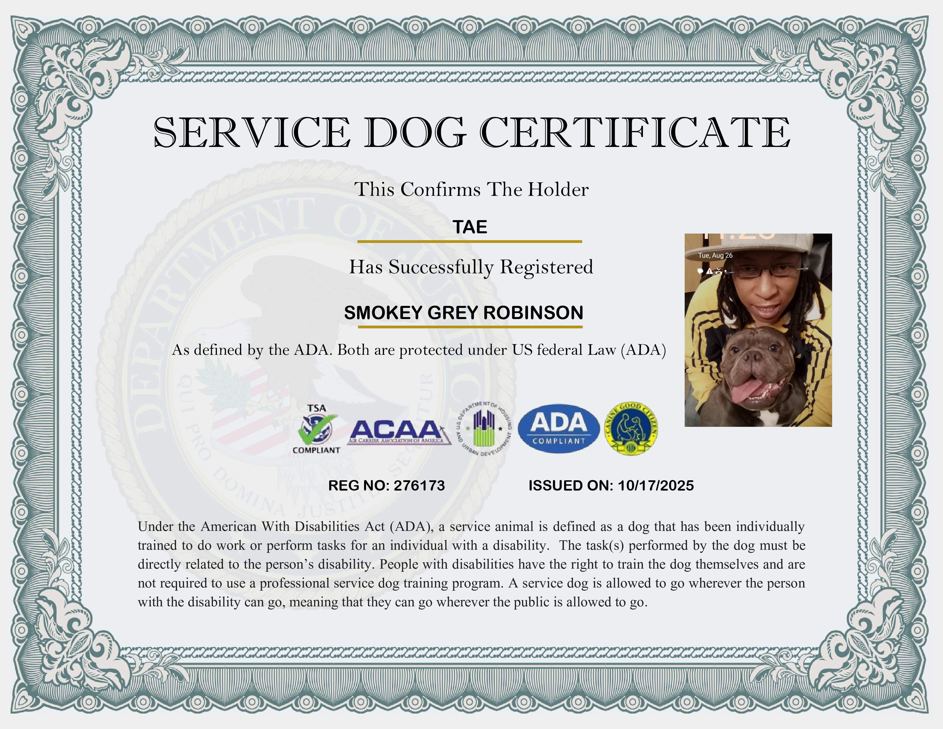 USA Service Dog Registration