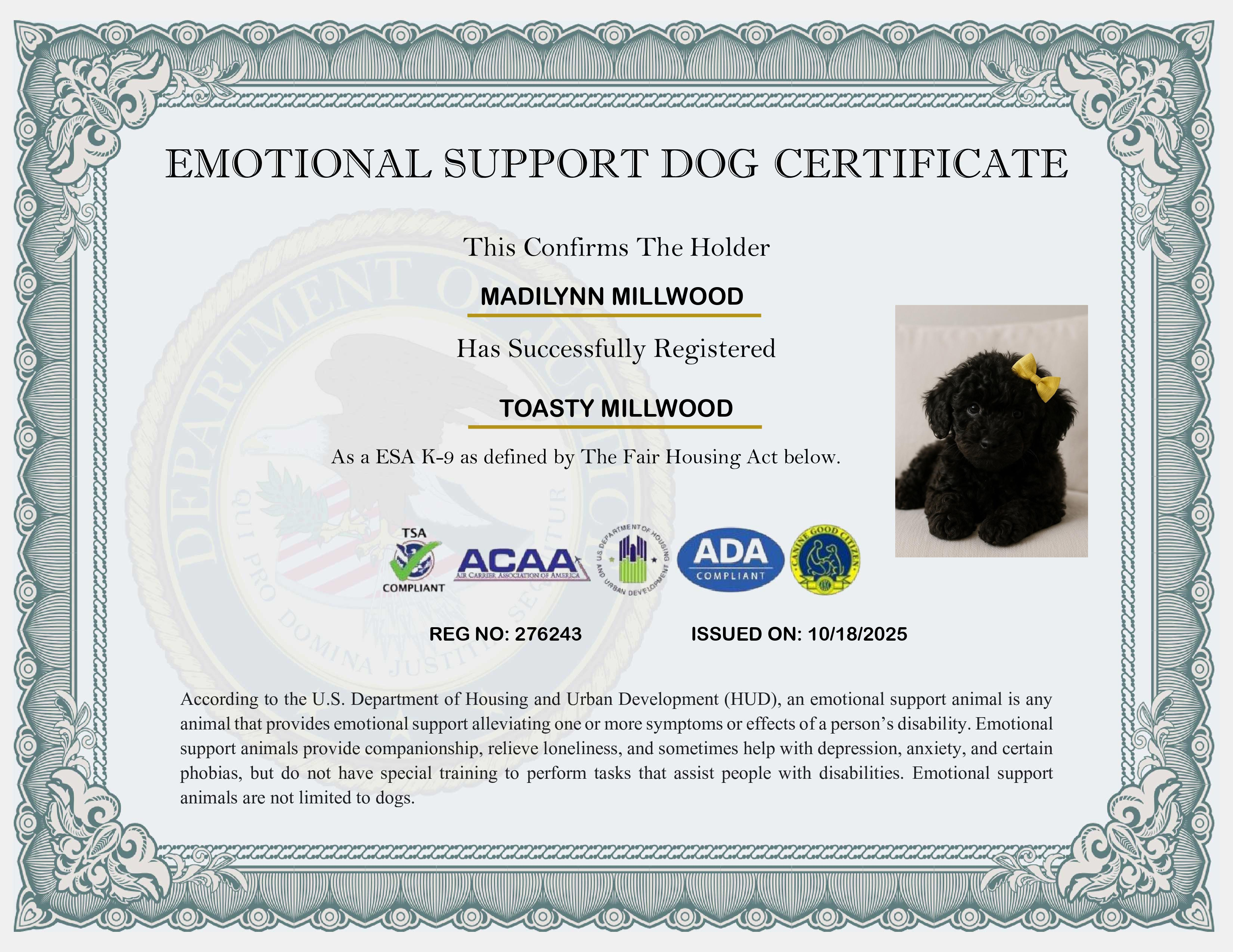 Emotional Support Dog ID Card