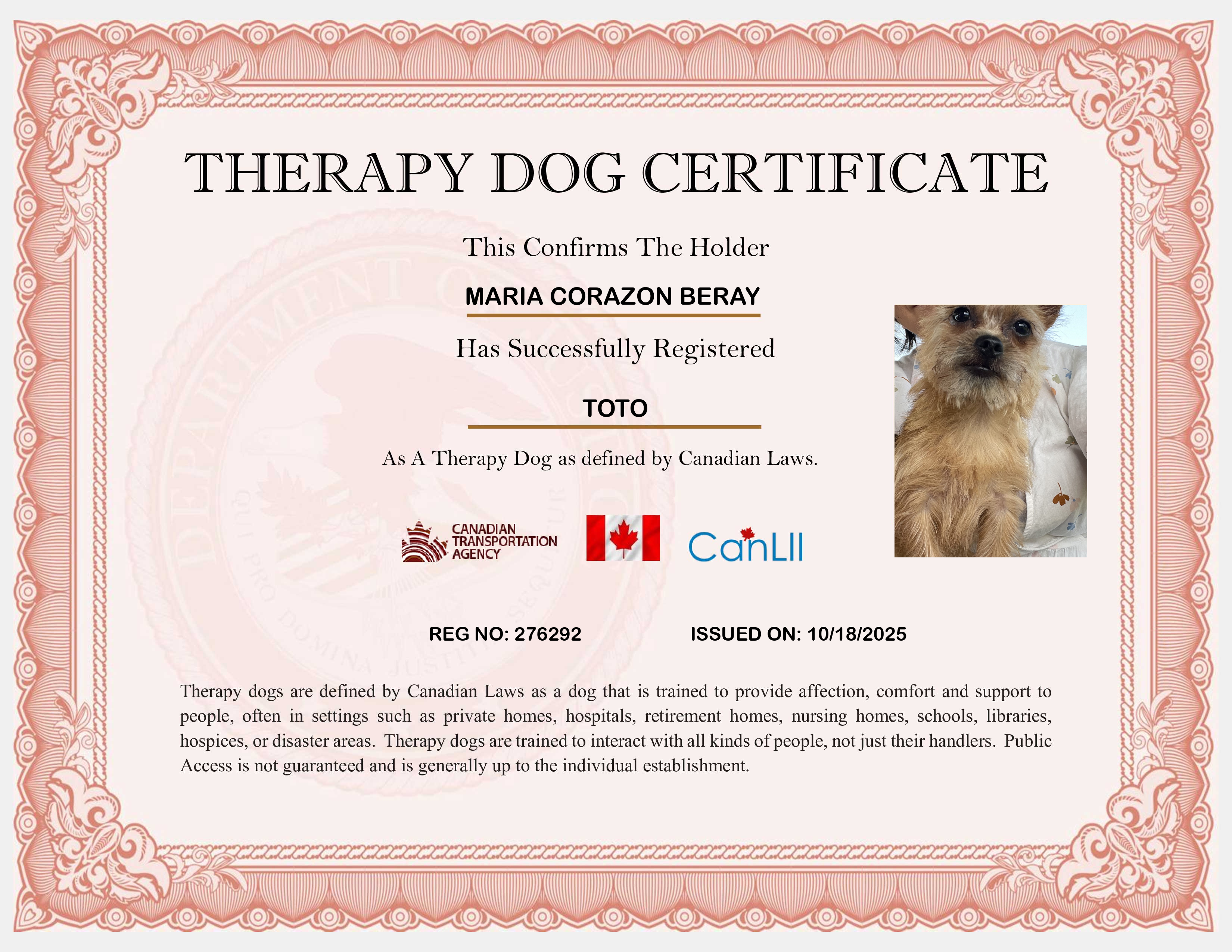 Canada Therapy Dog Registration